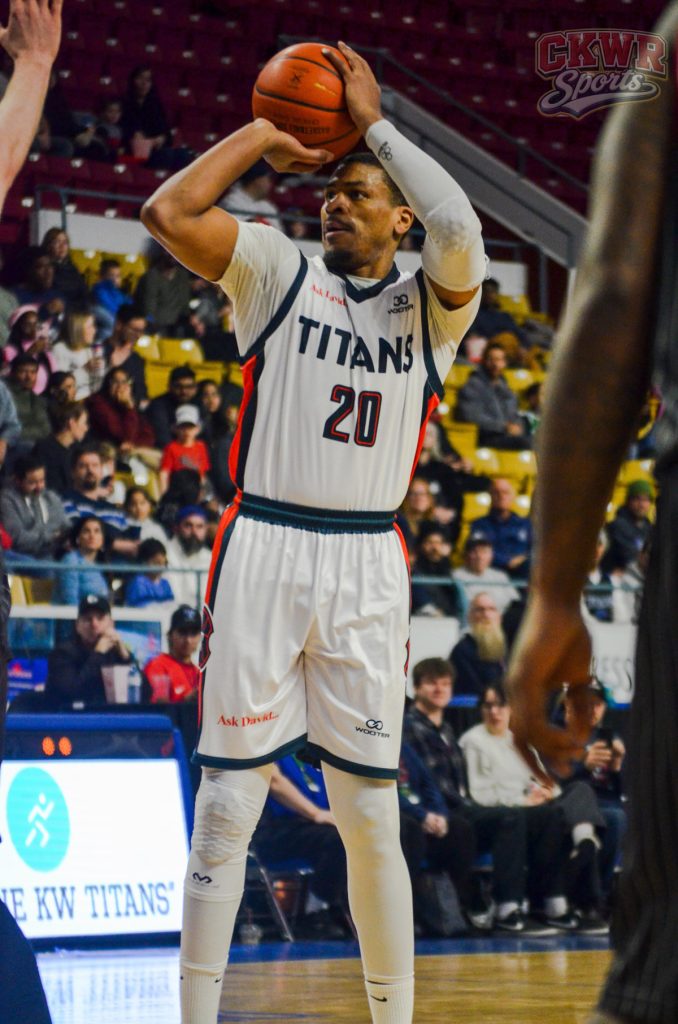 KW Titans’ player of the game Ty Pickett shooting a free throw during the February 7th matchup against the Sudbury Five at The Aud (Photo Credit: James Jordan)